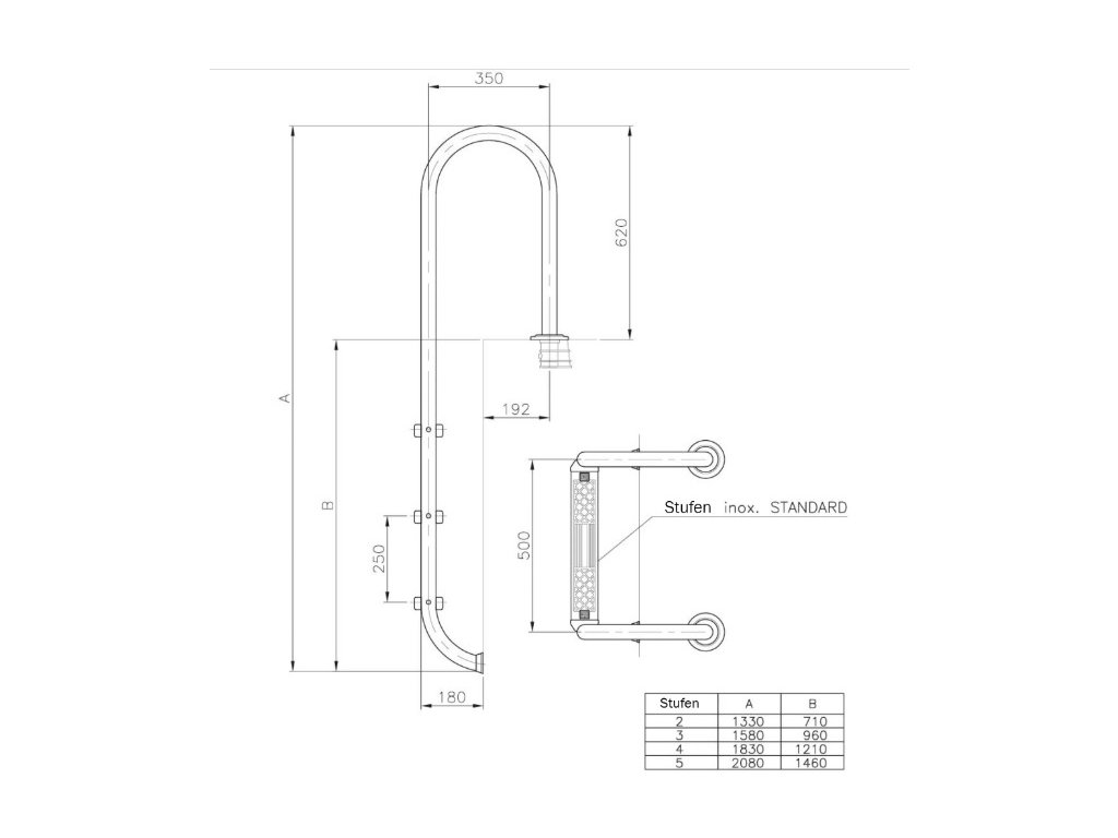 Bazénový nerezový rebrík z nerezovej ocele V2A, priemer 43 mm