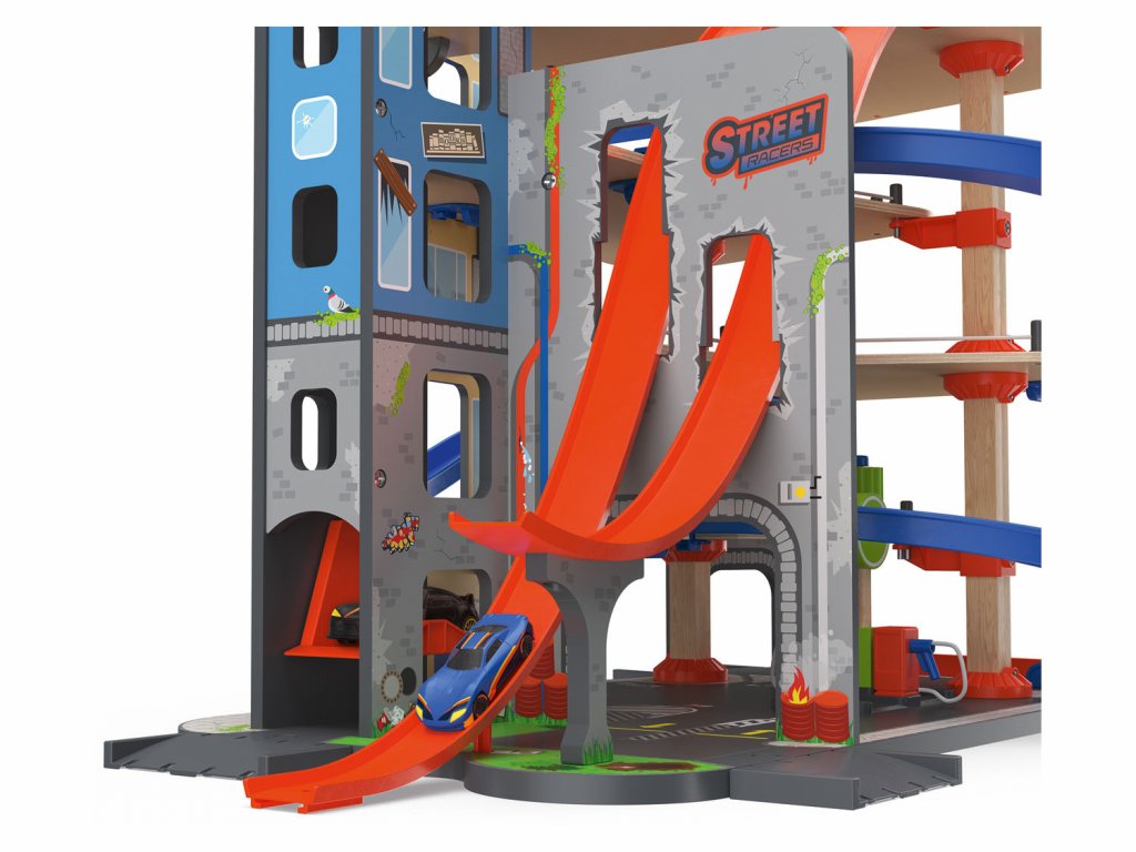 - S mnohými zaujímavými detailmi, ako je skokanský mostík, štartovacia rampa, čerpacia stanica, umývačka áut a špirálový zjazd