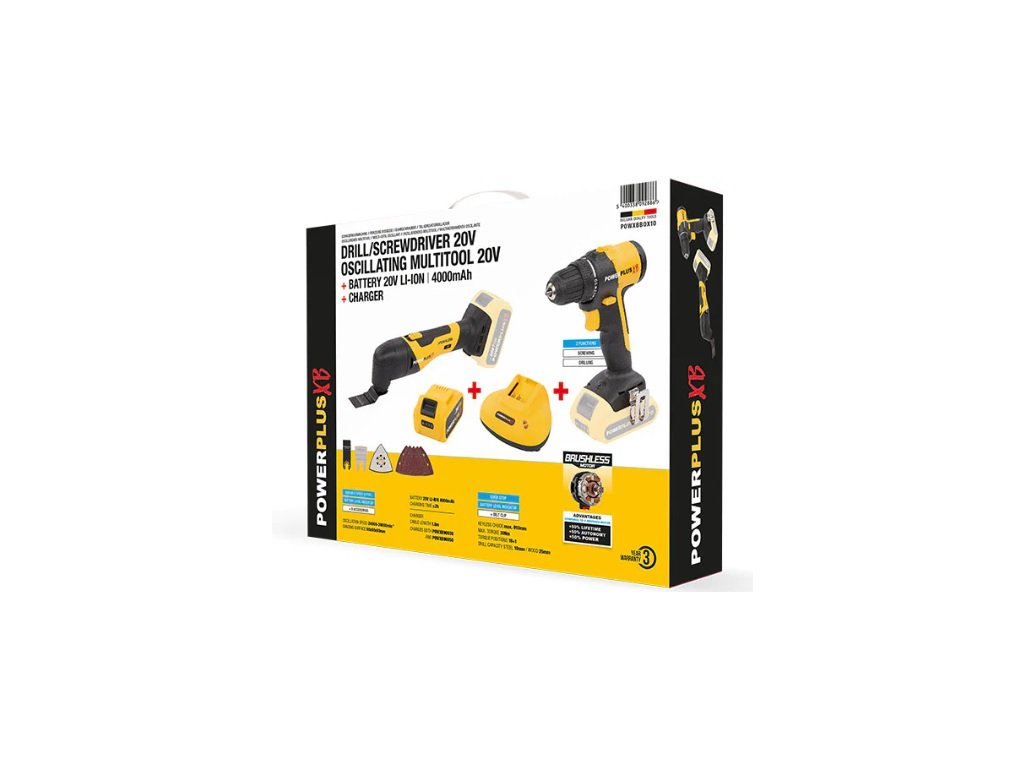 Táto praktická súprava náradia POWXBBOX10 značky Powerplus XB obsahuje všetko, čo potrebujete pre všetky vaše práce, opravy, vŕtanie, skrutkovanie, brúsenie a vylepšovanie. Sada obsahuje akumulátorový vŕtací skrutkovač, oscilačnú multifunkčnú brúsku, nabíjačku 20V a batériu 20V 4,0Ah.