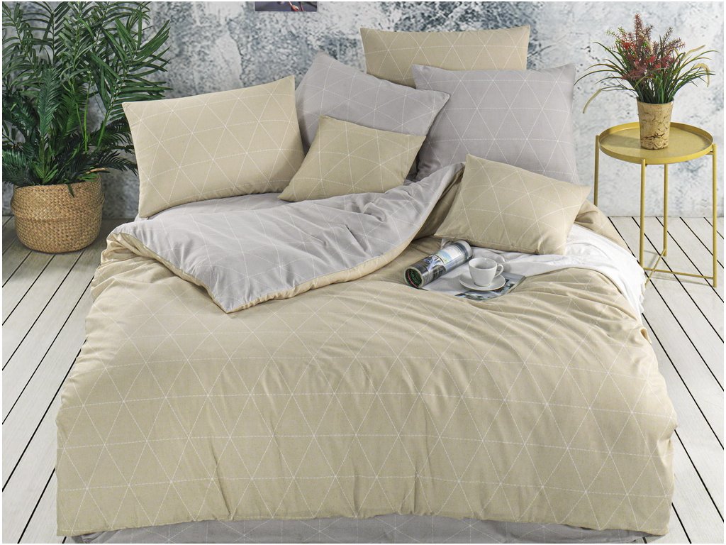 Obliečka na perinu je z jednej strany béžová az druhej šedá, obliečka na vankúš je z oboch strán béžová.