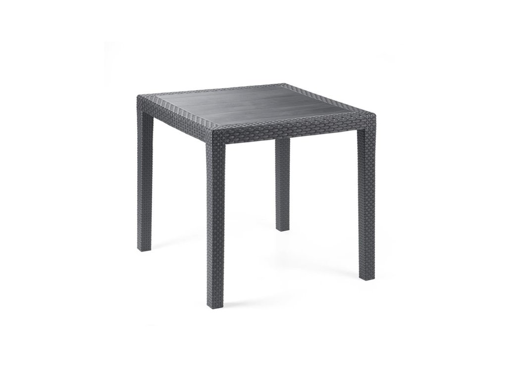 Veľmi pevný stôl s nosnosťou 50 kg v krásnom dekore antracitového ratanu. Výška stola je 73 cm a každá strana je o dĺžke 79 cm.