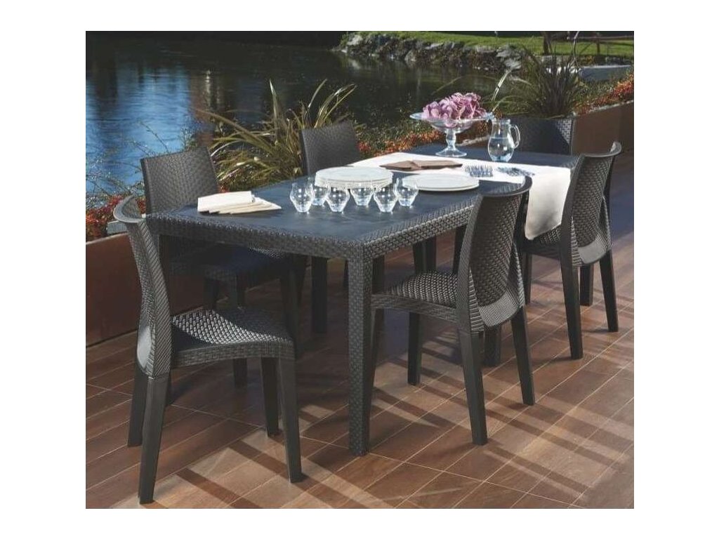 Užite si kráľovský komfort s naším luxusným záhradným stolom Queen. Tento stôl z odolného technoratanu sa pýši elegantným antracitovým dizajnom , ktorý vdýchne moderný šmrnc vašej záhrade, terase, altánku alebo pavilónu .