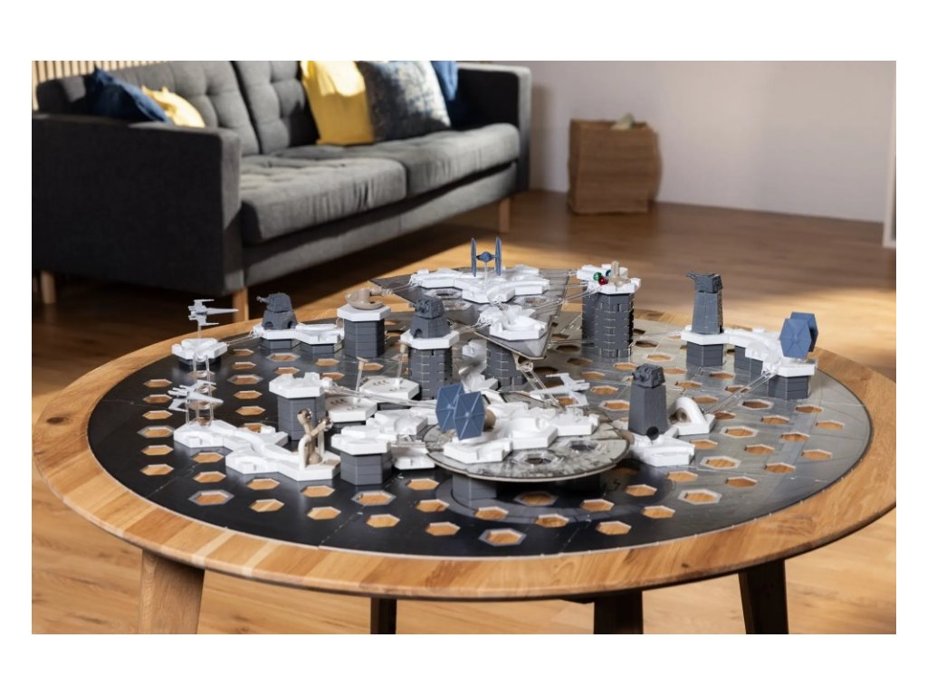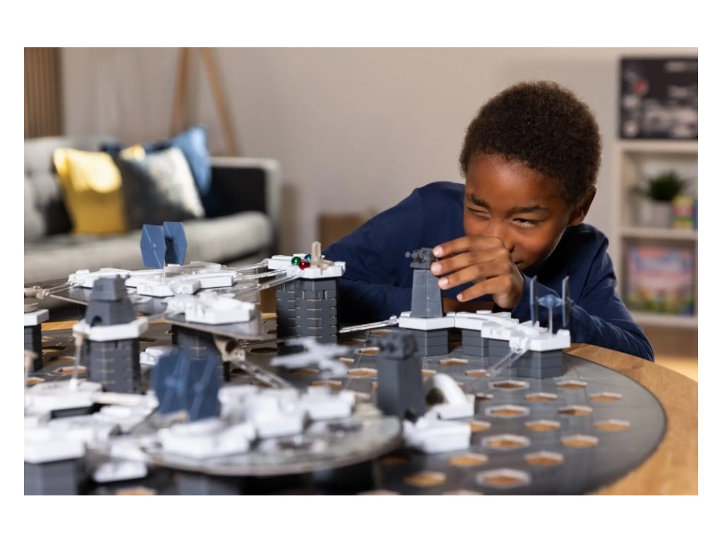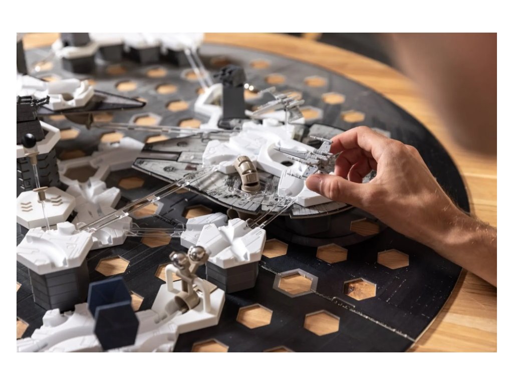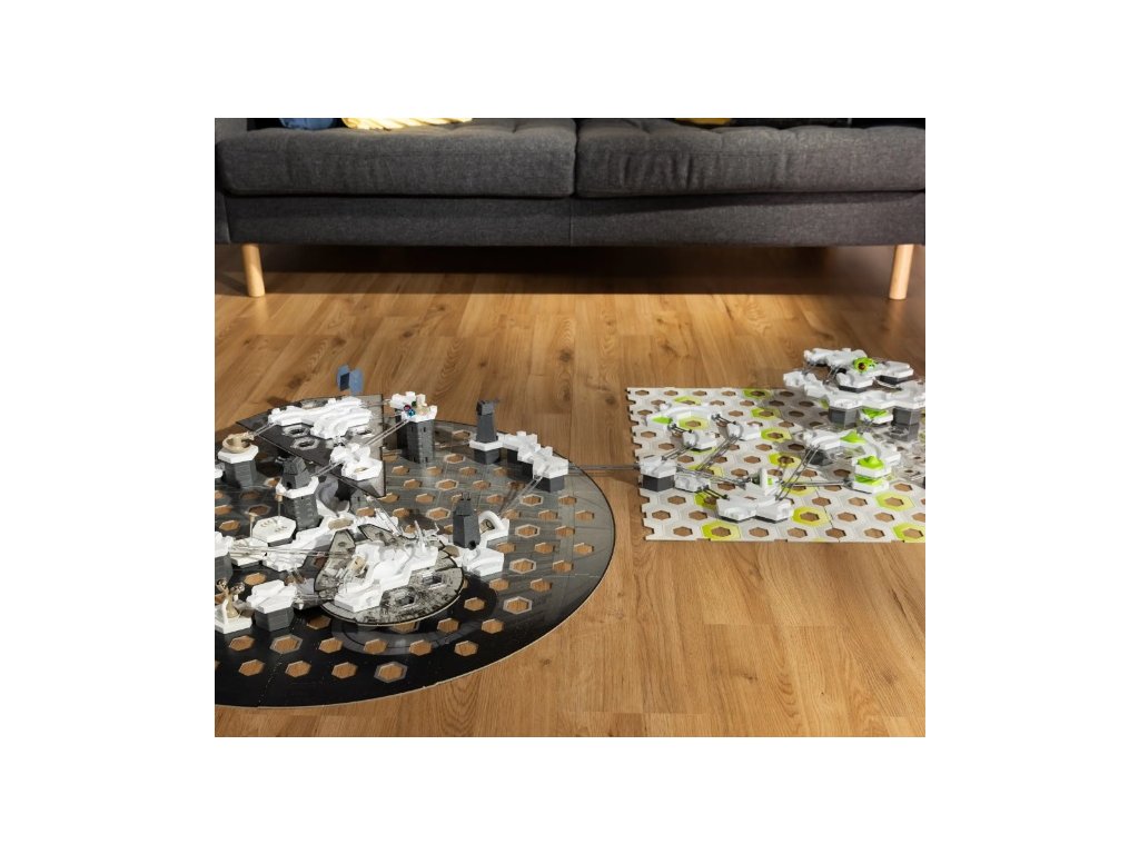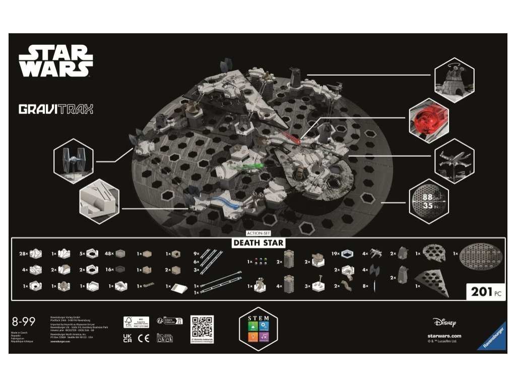 - Základná doska má unikátny tvar Hviezdy smrti, ktorý pridáva do vašej GraviTrax dráhy fascináciu a dobrodružstvo z Hviezdnych vojen.