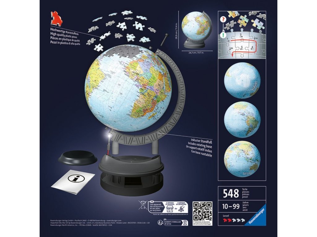 Ravensburger 3D Puzzleball Svietiaci glóbus 540 ks