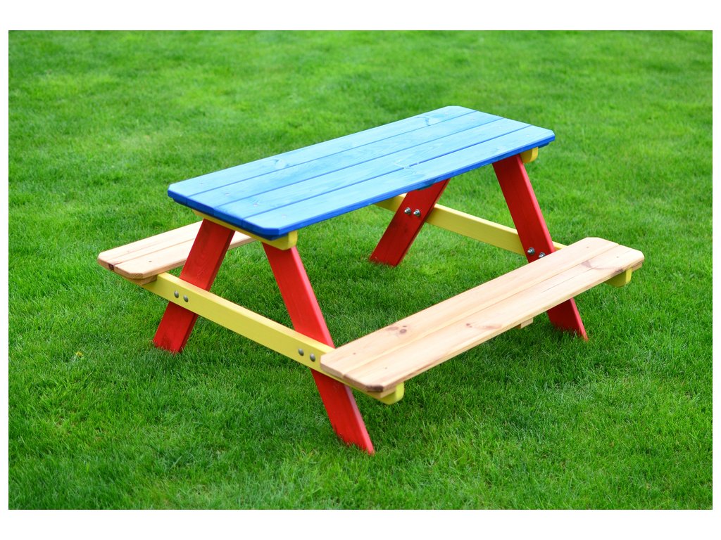 Detská drevená súprava PIKNIK k posedenie či hre pre tých najmenších. Táto súprava má veselé farebné prevedenie. Certifikát FSC zákazníkom zaručuje kvalitu použitého dreva