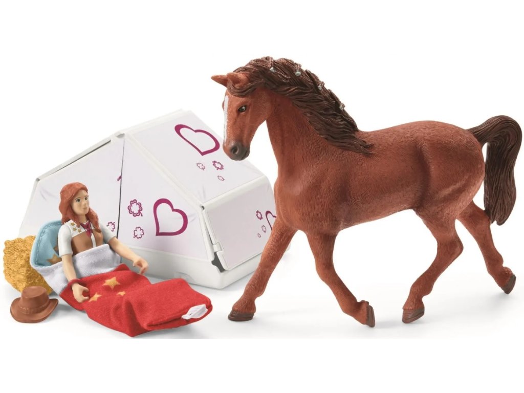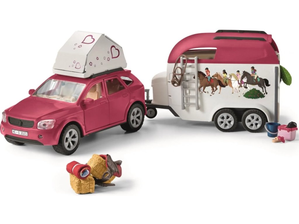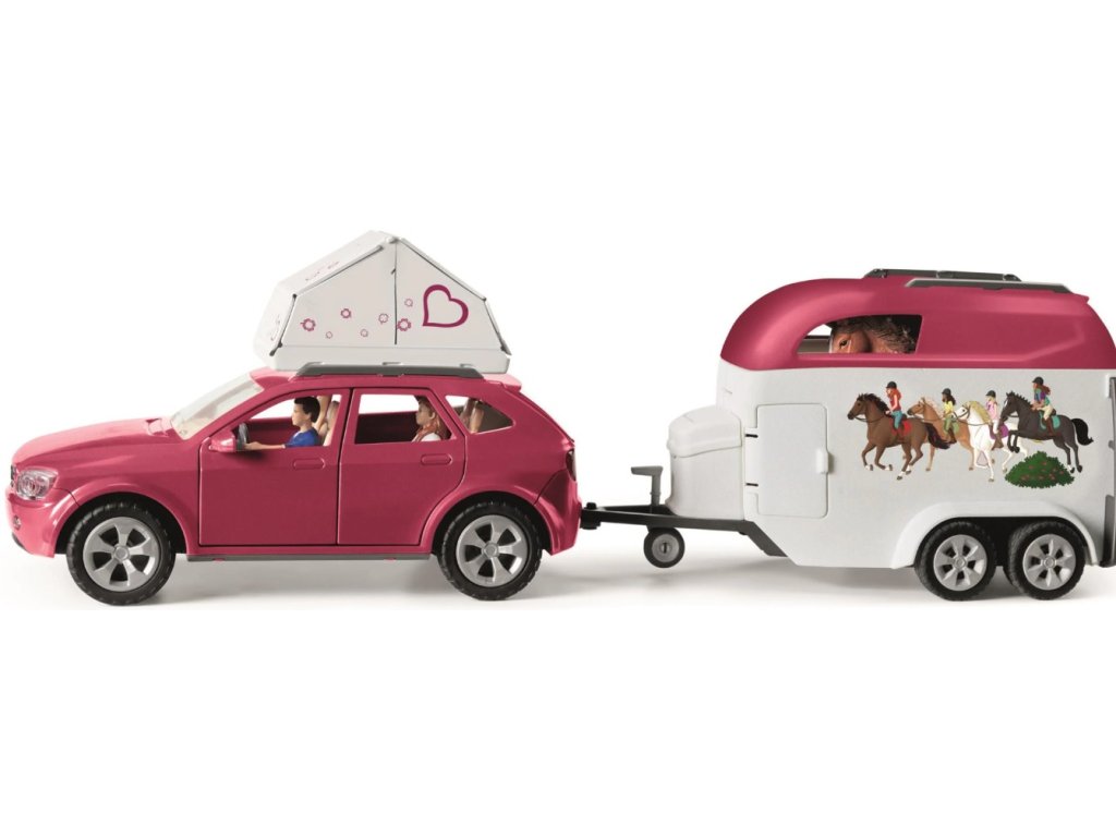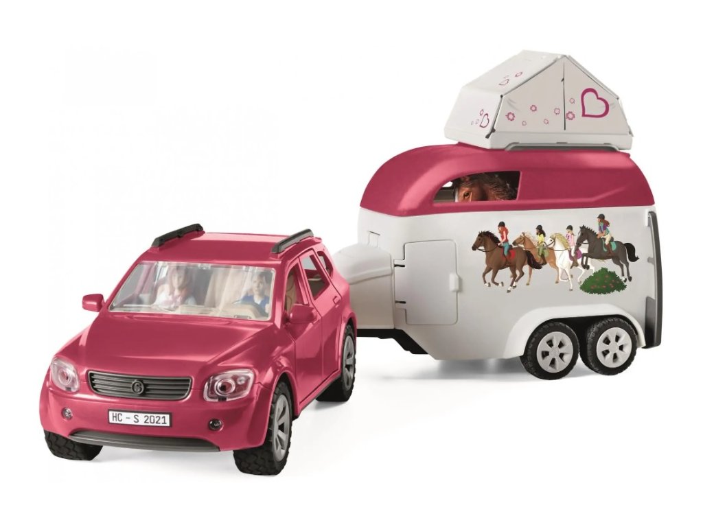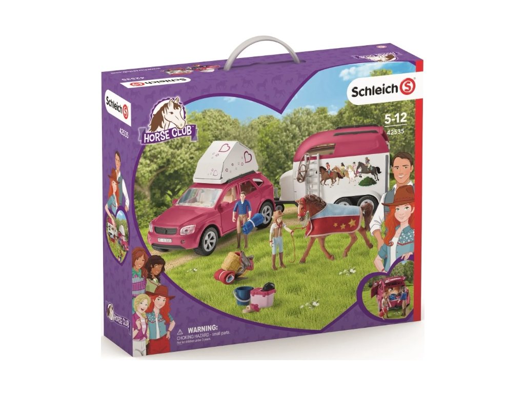 Hannah a jej otec vlastní úžasné vozidlo s koňom od Schleich® Horse Club! Toto vozidlo ponúka množstvo funkcií , ktoré rozširujú možnosti hry. V priestrannom SUV možno sedačky sklopiť , čo umožňuje pánovi Kramerovi zbaliť mnoho predmetov ako skladací stan a bohaté jazdecké príslušenstvo, vrátane helmy, sedla, uzdečky, vedra a boxu na starostlivosť obsahujúceho masážnu kefu a hrebeň .