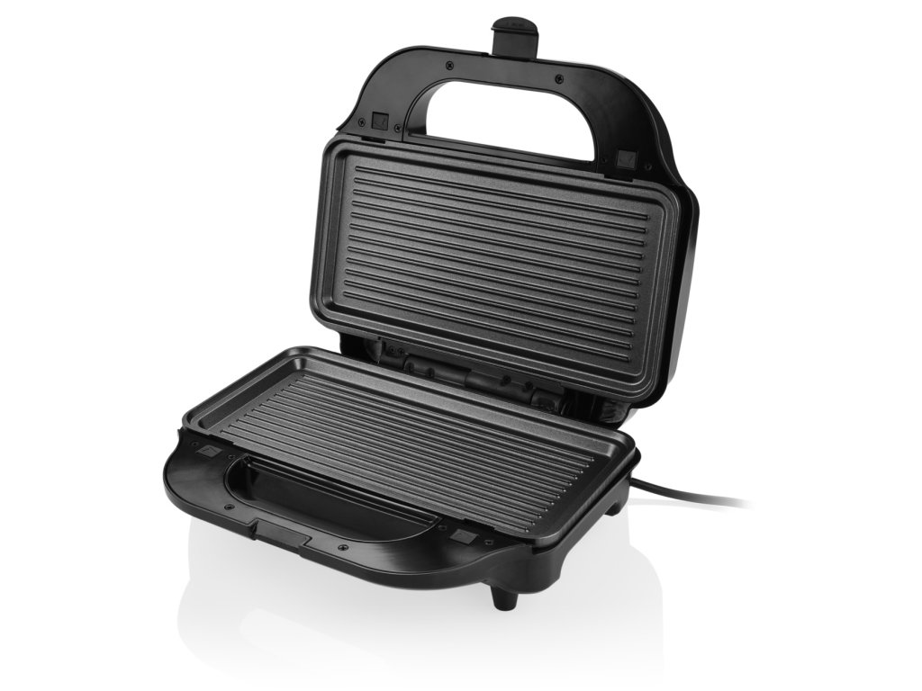 Jednoduché používanie a údržba: Vymeniteľné dosky s antiadhéznou úpravou zabraňujú pripaľovaniu a uľahčujú čistenie. Automatická regulácia teploty a svetelná signalizácia zjednodušujú ovládanie, zatiaľ čo ochranná tepelná poistka zvyšuje bezpečnosť pri používaní. Sendvičovač je ľahký, kompaktný a vďaka modernému dizajnu v kombinácii nerezu a kvalitného plastu skvele vyzerá na každej kuchynskej linke.