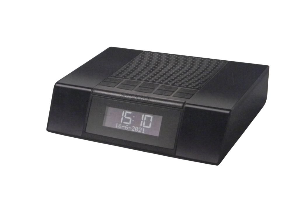 - Hodiny s reálnym časom automaticky synchronizované cez DAB+