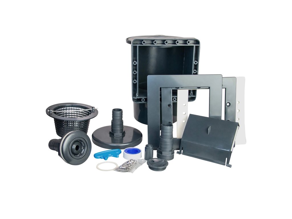 Univerzálny skimmer pre takmer všetky bazény s oceľovou stenou na trhu s otvorom v stene 148 x 140 mm. Skimmer je pripojiteľný na bazénové hadice o rozmere 32 alebo 38 mm. Súčasťou balenia skimmera sú vratná tryska (pre otvor 60 mm a pripojenie bazénovej hadice 32/38 mm), zberný košík, plávajúca klapka proti návratu nečistôt do bazéna a veko s hubicou na pripojenie ručných a poloautomatických vysávačov.