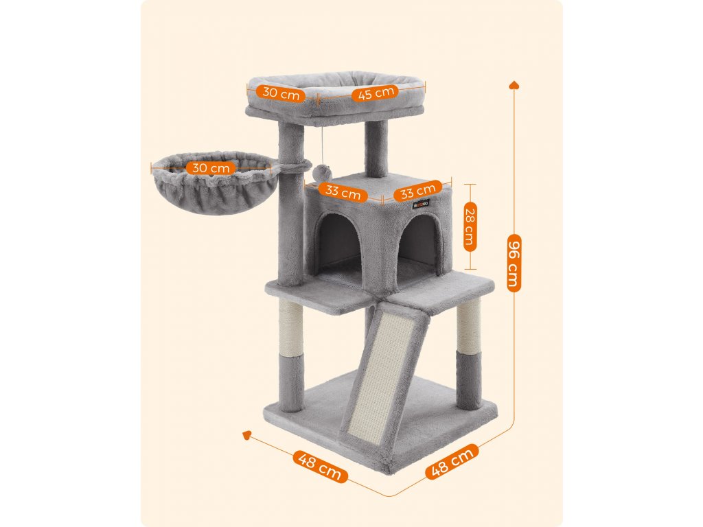 Songmics PCT51W Mačacie škrabadlo 48 x 96 x 48 cm šedé