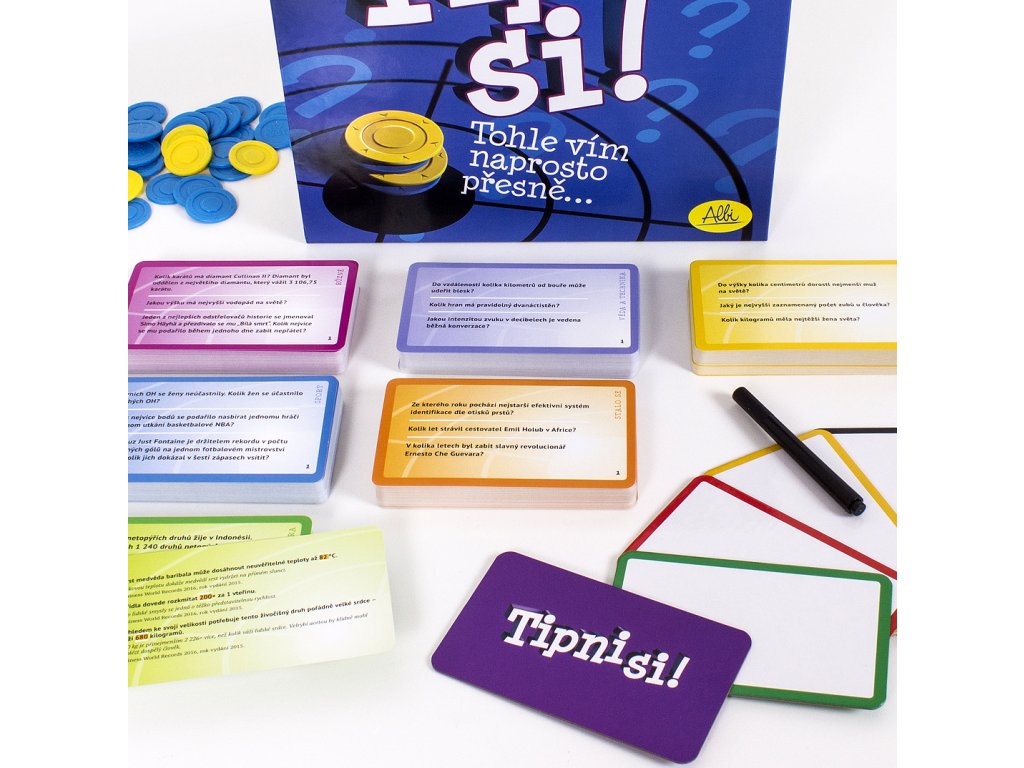 Viete, ako dlho spia žirafy, alebo do akej výšky dorástol najvyšší človek na svete? Ak nie, tak nevadí! Môžete si proste len tipnúť! V párty hre Tipni si budete odhadovať rýchlosť, dĺžku, výšku, hmotnosť alebo napríklad správny letopočet. Pokiaľ si svojim tipom nebudete istí, môžete si staviť aj na svojho súpera! Počas hry Tipni si sa dozviete vtipnou formou veľa zaujímavých informácií, rekorků a kuriozít. V tejto párty hre nájdete 1 188 otázok rozdelených do 6 okruhov: spoločnosť, fauna a flóra, veda a technika, stalo sa, šport a rôzne. Tipovanie, stávkovanie a debatovania o zaujímavých otázkach nebolo nikdy zábavnejšie, stavte sa!