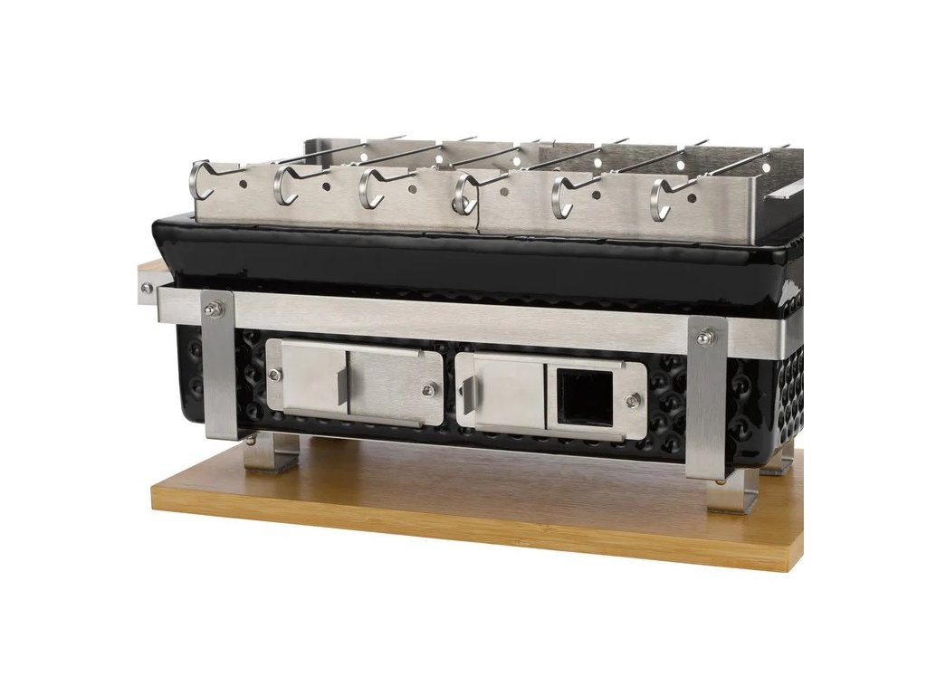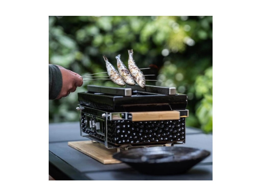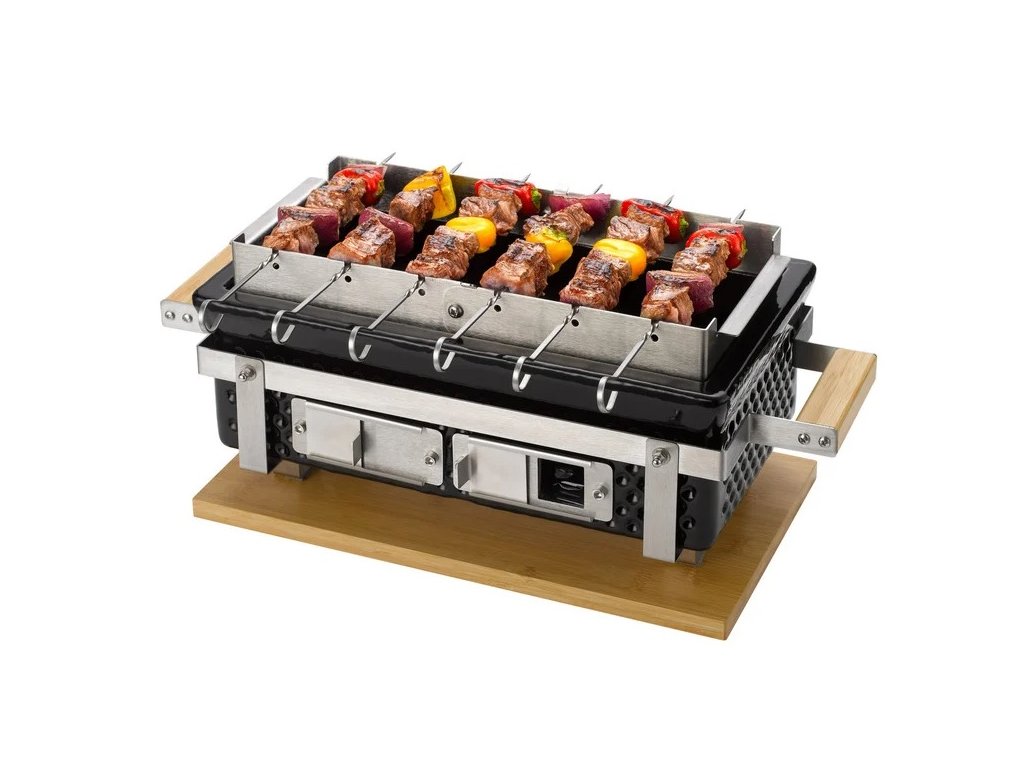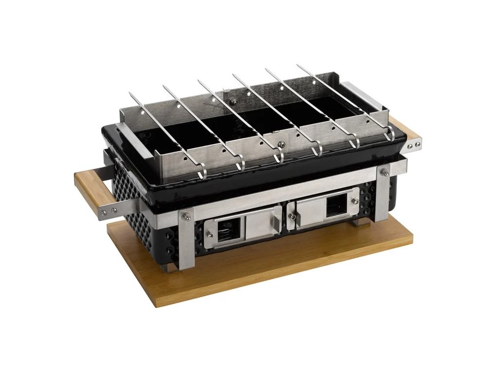 Ak hľadáte spôsob, ako obohatiť svoje kulinárske zážitky a zároveň ohromiť svojich hostí, keramický gril na drevené uhlie Hibach aj je tou správnou voľbou. Jeho kompaktný dizajn umožňuje ľahké umiestnenie na akomkoľvek stole, čo je ideálne na prípravu špízov s marinovanými kúskami mäsa, rýb, morských plodov alebo zeleniny.