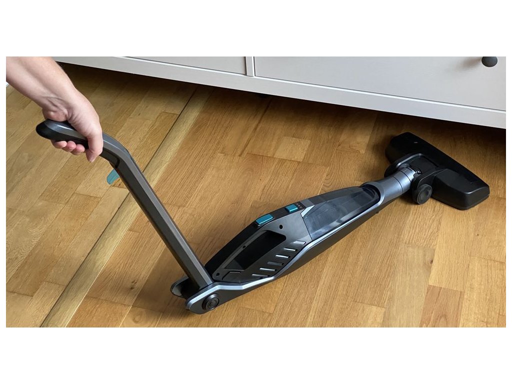 - ergonomická sklopná rukoväť (Vďaka obojstranne sklopnému kĺbu ľahké vysávanie pod nábytkom)