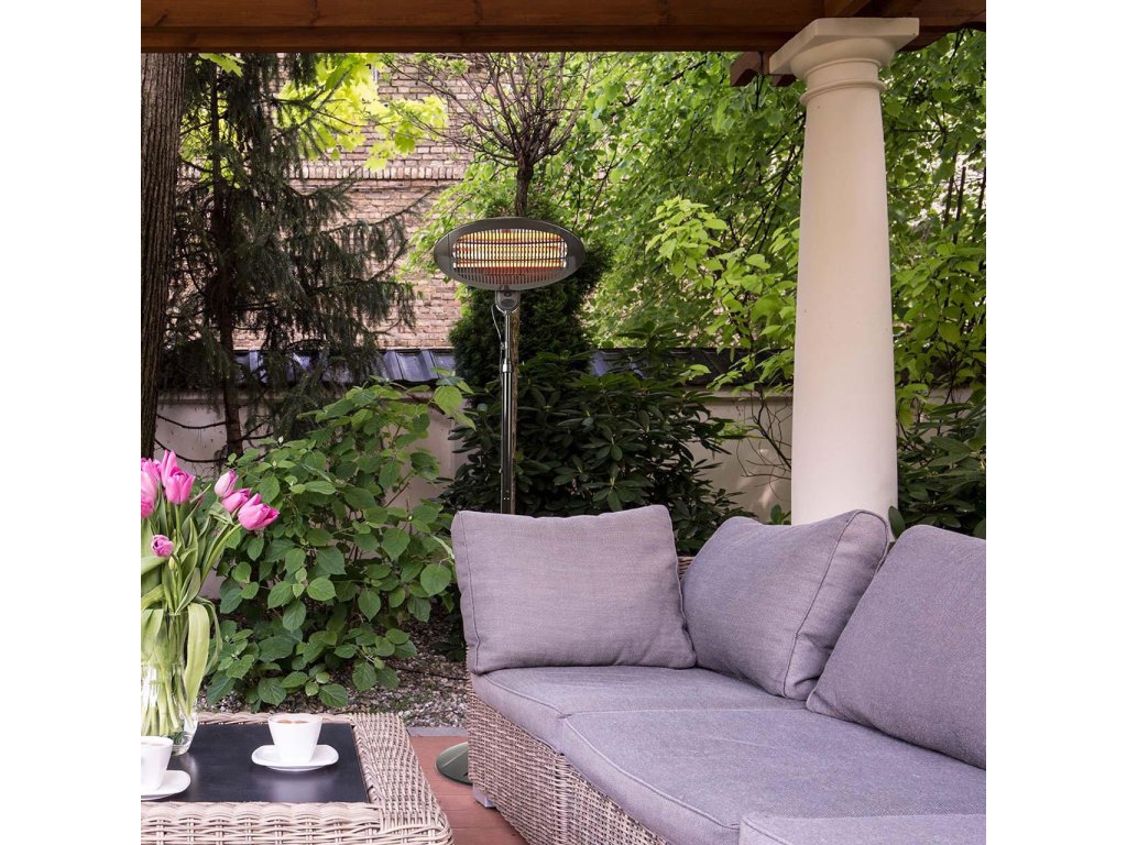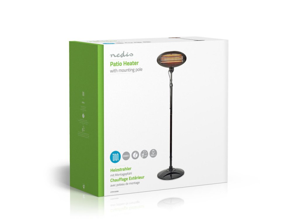 Vodeodolné vonkajšie výhrevné teleso Nedis® HTPA120EBK vhodné napr. na terasu na príjemne strávené večery na čerstvom vzduchu. Výškovo nastaviteľné, s 3 úrovňami výkonu 650, 1300, 2000 W dokáže vykúriť vonkajšiu plochu až 12 m², prípadne miestnosť až 25 m².