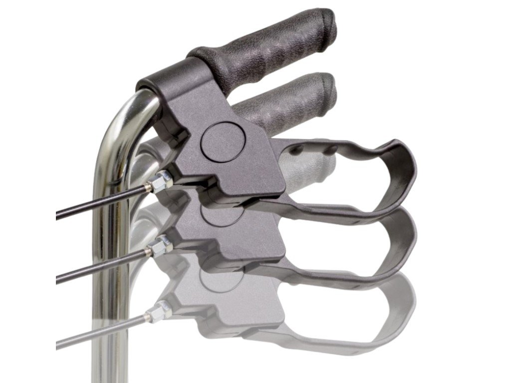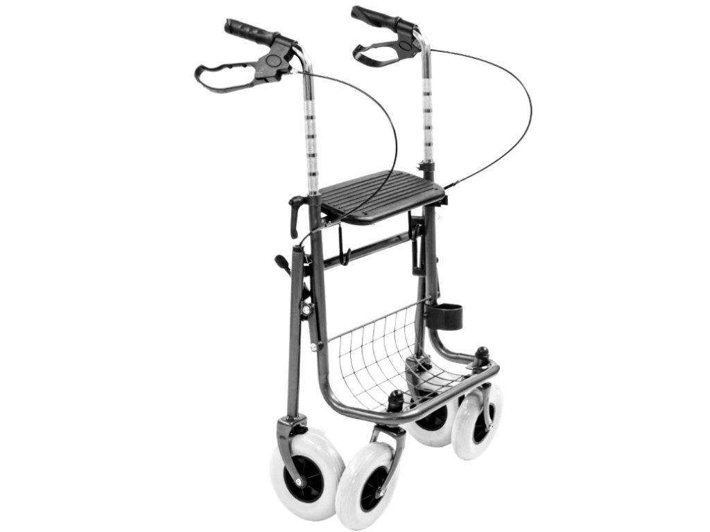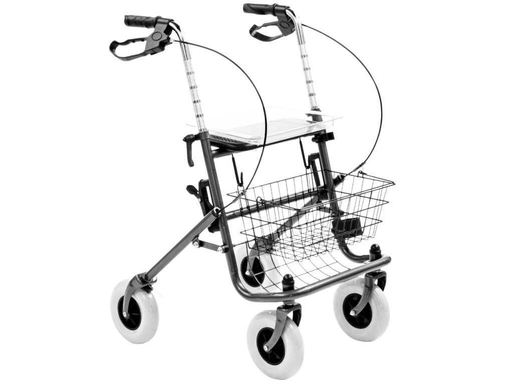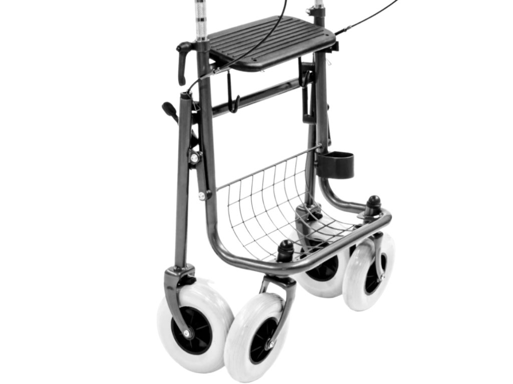- Ergonomické ovládanie: Chodítko má dva brzdové úchyty na ergonomicky tvarovaných rukovätiach, ktoré je možné ľahko nastaviť v rozmedzí 77–101 cm.