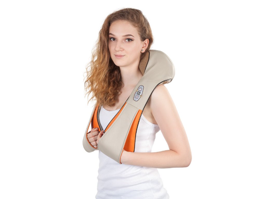 S elektrickým masážnym prístrojom SHIATSU si môžete dopriať efektívne a blahodarnú automasáž. Masáž má uvoľňujúci a povzbudzujúci účinok a odporúča sa pri natiahnutí svalov, bolestiach a únave. Masážny prístroj s infra vyhrievaním SHIATSU poskytuje intenzívnu masáž pre oblasť krku a ramien, ktorá uvoľňuje napätie vo vnútorných svalových vrstvách. Jednoduché použitie s ovládacím prvkom na prístroji. Možnosť masáže aj iných častí tela - masáž chrbta, stehien, zadku, chodidiel, paží, ...