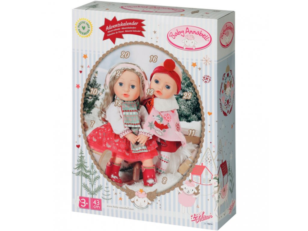 Adventný kalendár Baby Annabell ukrýva oblečenie a doplnky v klasických odtieňoch červenej a zelenej farby. Čakanie na Štedrý deň strávi bábika Baby Annabell v pohodlnom dvojdielnom oblečku s motívmi soba, cukrových paličiek a vianočných stromčekov. Pri tom nadšene cumlá cumlík alebo hryzie hryzátko .
