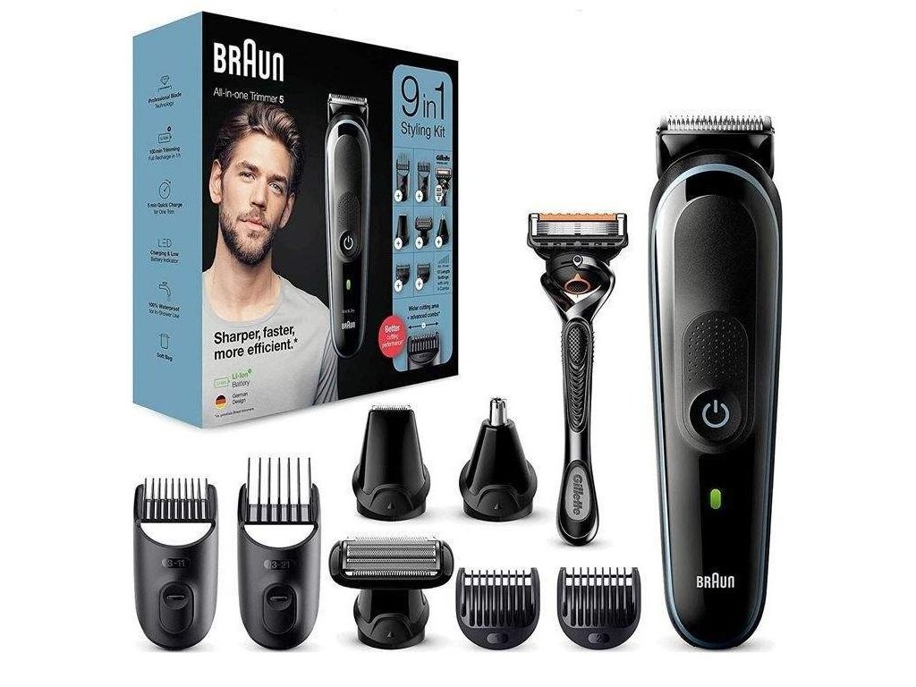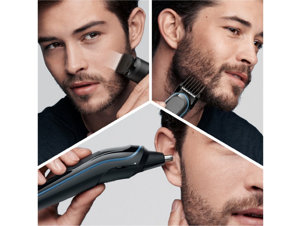- 9v1: pánsky multifunkčný zastrihávač Braun MGK5 so sadou pre starostlivosť o telo zastrihuje fúzy a chĺpky s ľubovoľnou dĺžkou. Počnúc zastrihávaním fúzov, vlasov a chĺpkov v ušiach až po úpravu ochlpenia na tele.
